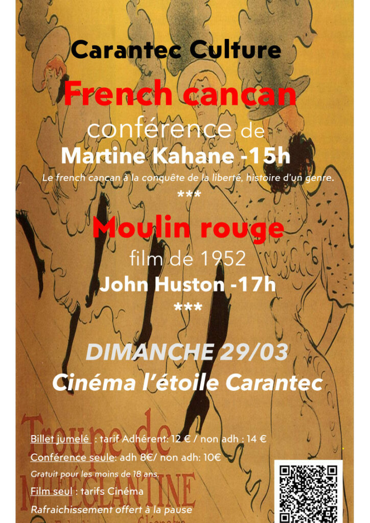 En partenariat avec le cinéma Etoile de Carantec, la conférence est suivie de la projection du film de John Huston « Moulin rouge », film anglo-américain de 1952.